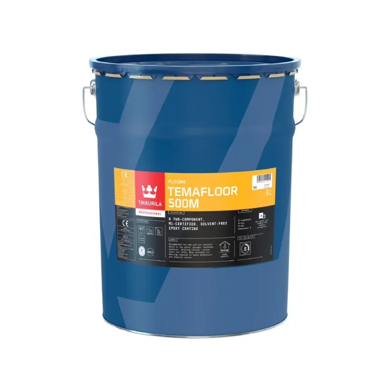 Temafloor 500M tål kraftiga mekaniska och kemiska påfrestningar i industri- och lagerlokaler, kommersiella anläggningar, reparationsverkstäder, osv. Den ger betonggolvet en icke-porös yta som gör rengöringen enklare och snabbare.